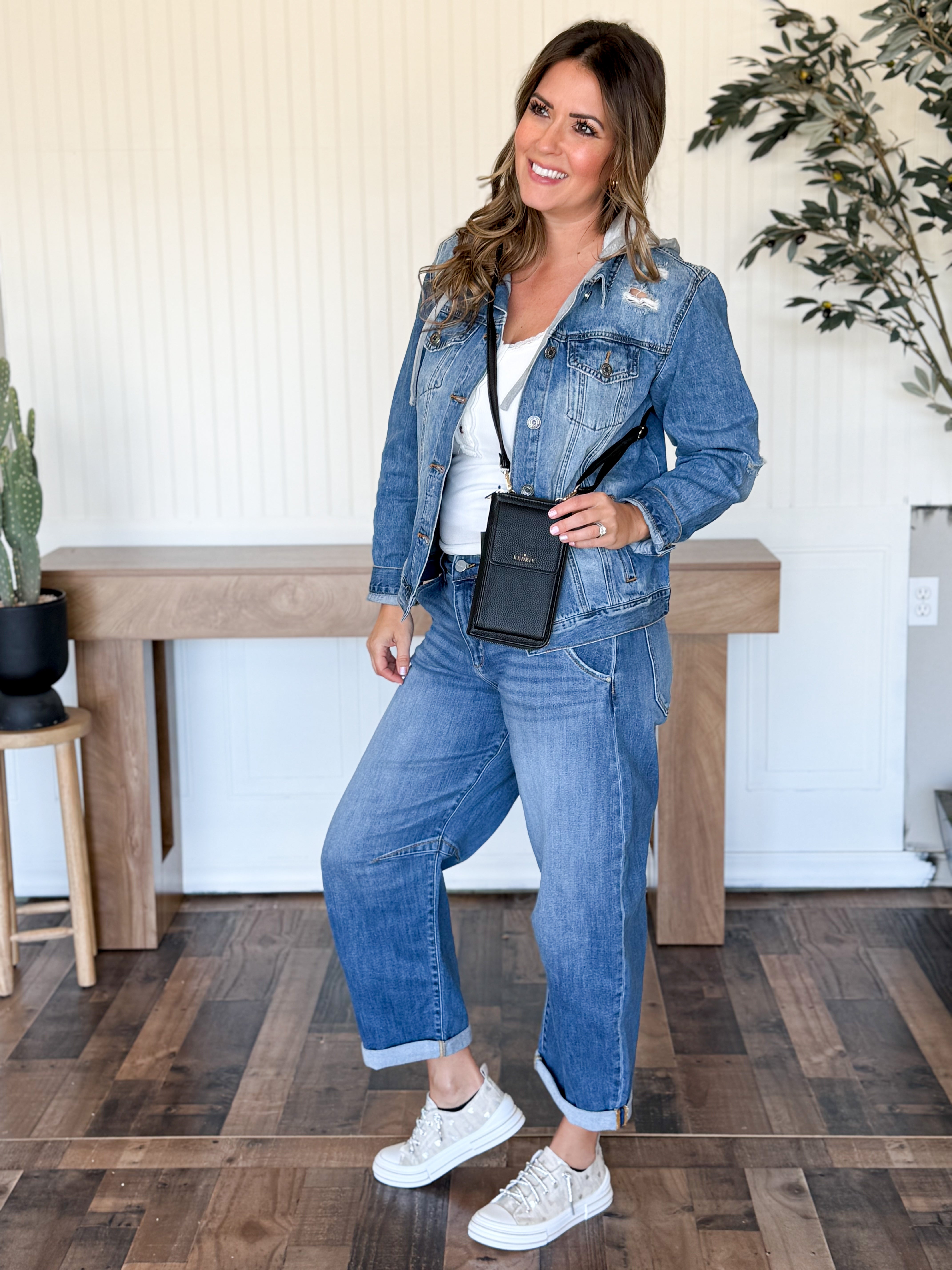 When you just need the essentials, this compact cutie has you covered. It fits your phone, keys, and wallet, and can be worn as a crossbody or a wristlet—perfect for grab-and-go days.