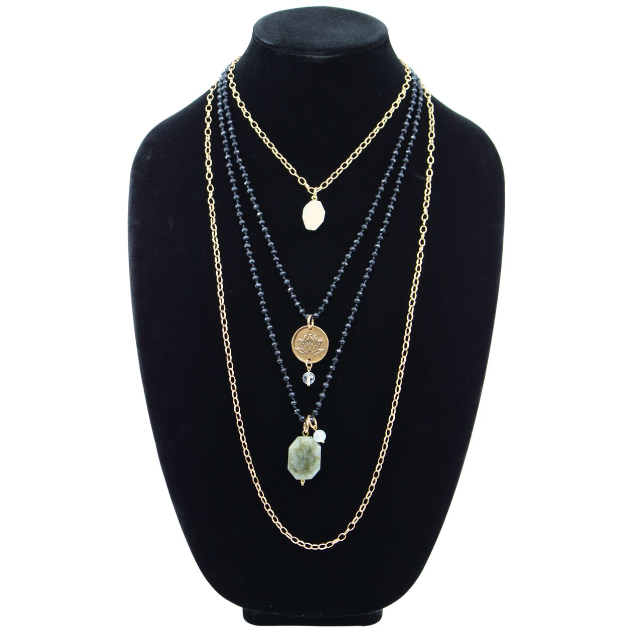 The Original Layering Bundle includes: (1x) 4mm crystal bead necklace, faceted labradorite, crystal quartz (1x) 48" stainless steel chain in coordinating finish, crystal quartz