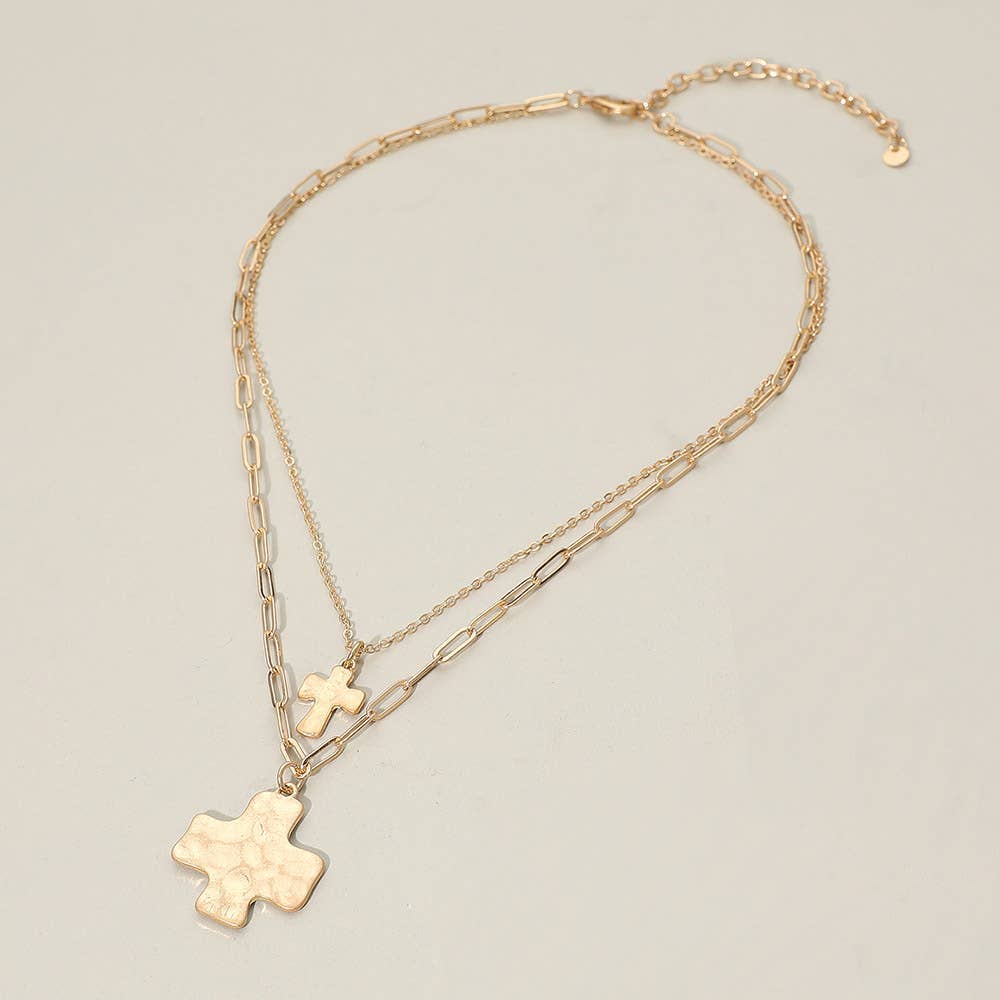 This necklace is the perfect mix of meaningful and modern. Featuring a double-layered design with hammered metal cross accents, it adds effortless depth to any outfit. Wear it with a simple tee for everyday polish or layer it into dressier looks for a little extra shine. It’s lightweight, versatile, and one of those pieces that instantly pulls an outfit together.