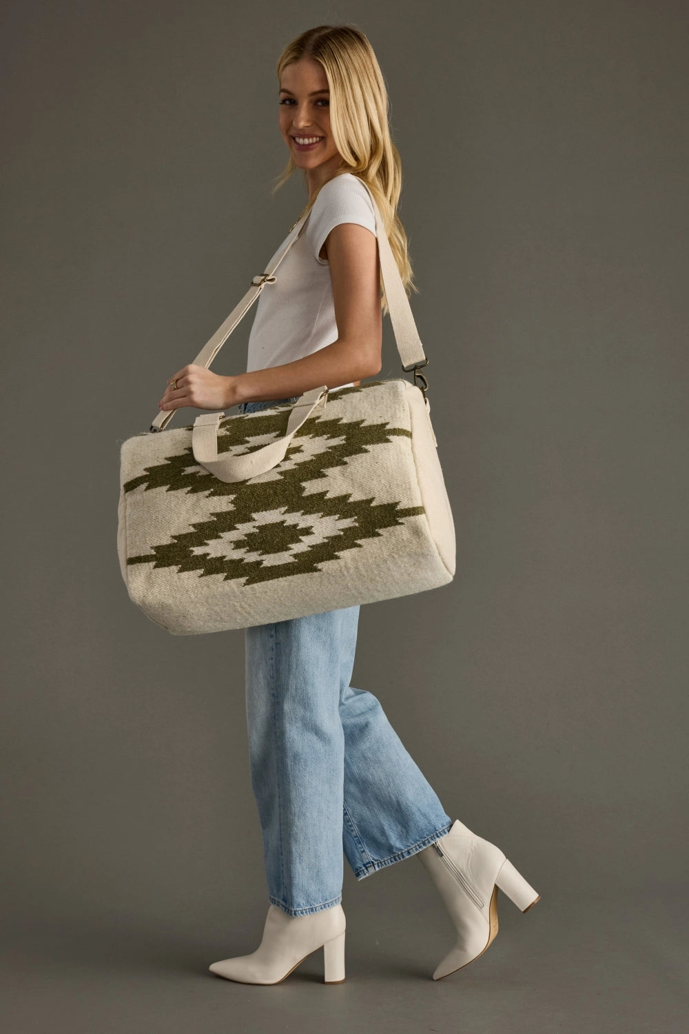 Cream & Olive Western Duffel