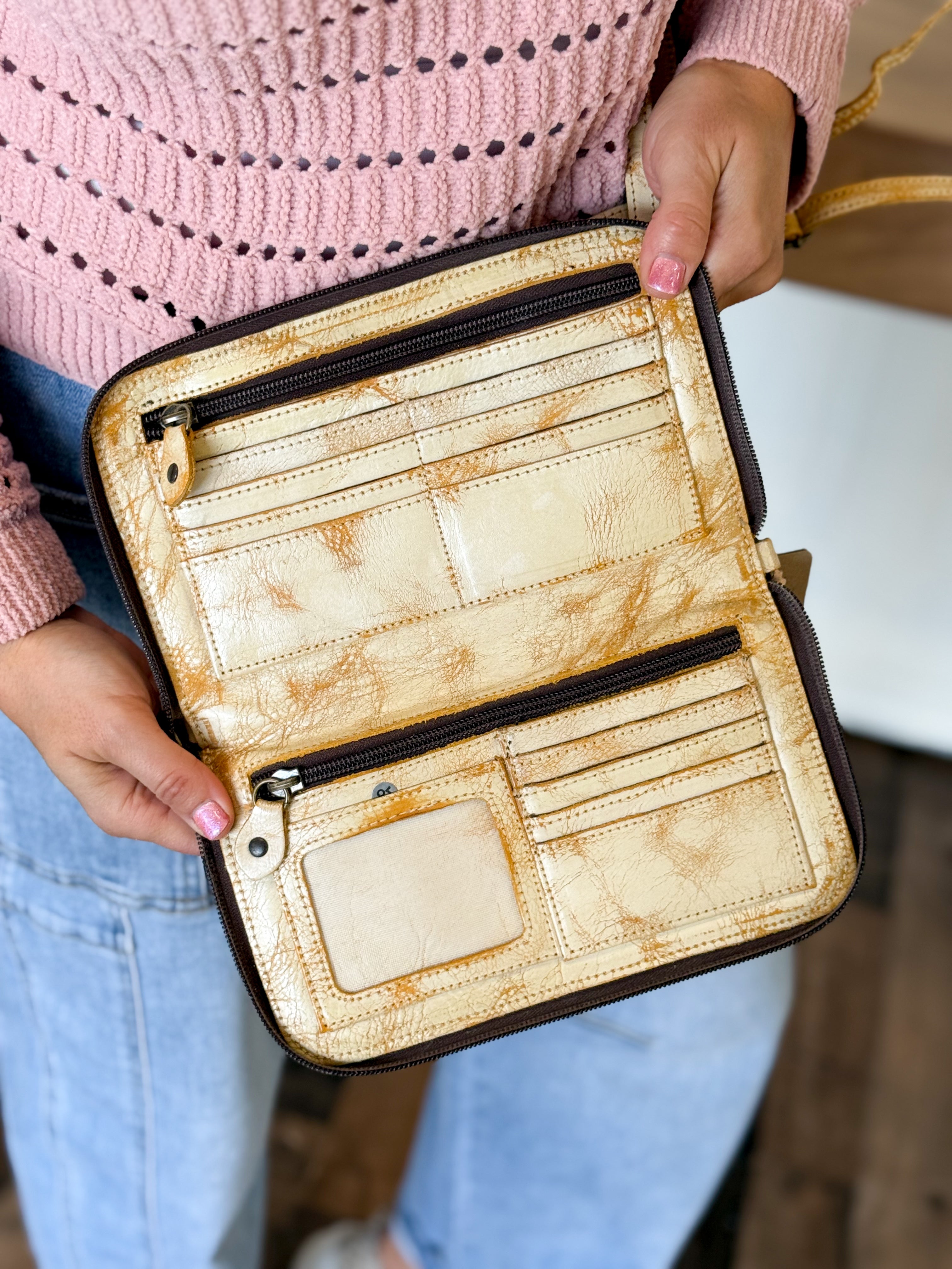 The Templeton II is designed for maximum organization and convenience. It features a zip closure that runs along three of its four sides, secured with sturdy leather pulls, giving you quick and easy access to your essentials. Inside, you’ll find two zippered pockets, perfect for coins and small valuables, along with a mesh ID insert and 12 credit card slots, making this bag perfect for both everyday use and travel. Whether you wear it as a crossbody with the adjustable strap, carry it as a clutch, or use it as a wallet inside a larger bag, the Templeton II adapts to your needs effortlessly.