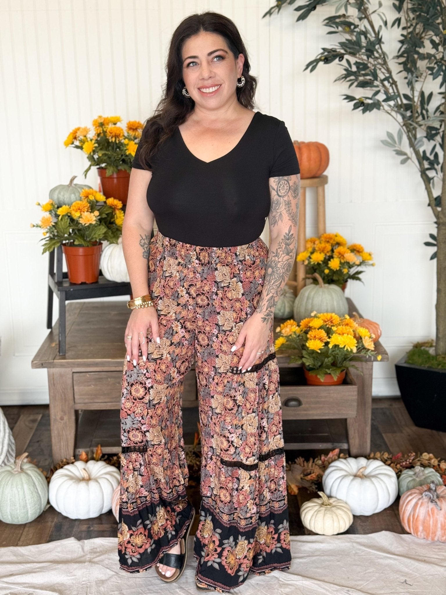 The Meadow Lace Wide Leg Pants are equal parts boho and chic—flowy, feminine, and oh-so-comfy. The smocked waistband gives you that perfect easy fit while the wide leg keeps things breezy. Lace inset panels add a delicate, romantic touch that makes these pants feel extra special whether you’re dressing them up or keeping it casual.