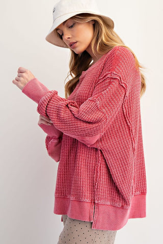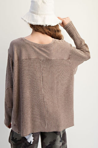 Vintage Vibe Mineral Wash Pullover – Relaxed Exposed Seam Cotton Sweatshirt, Cacao