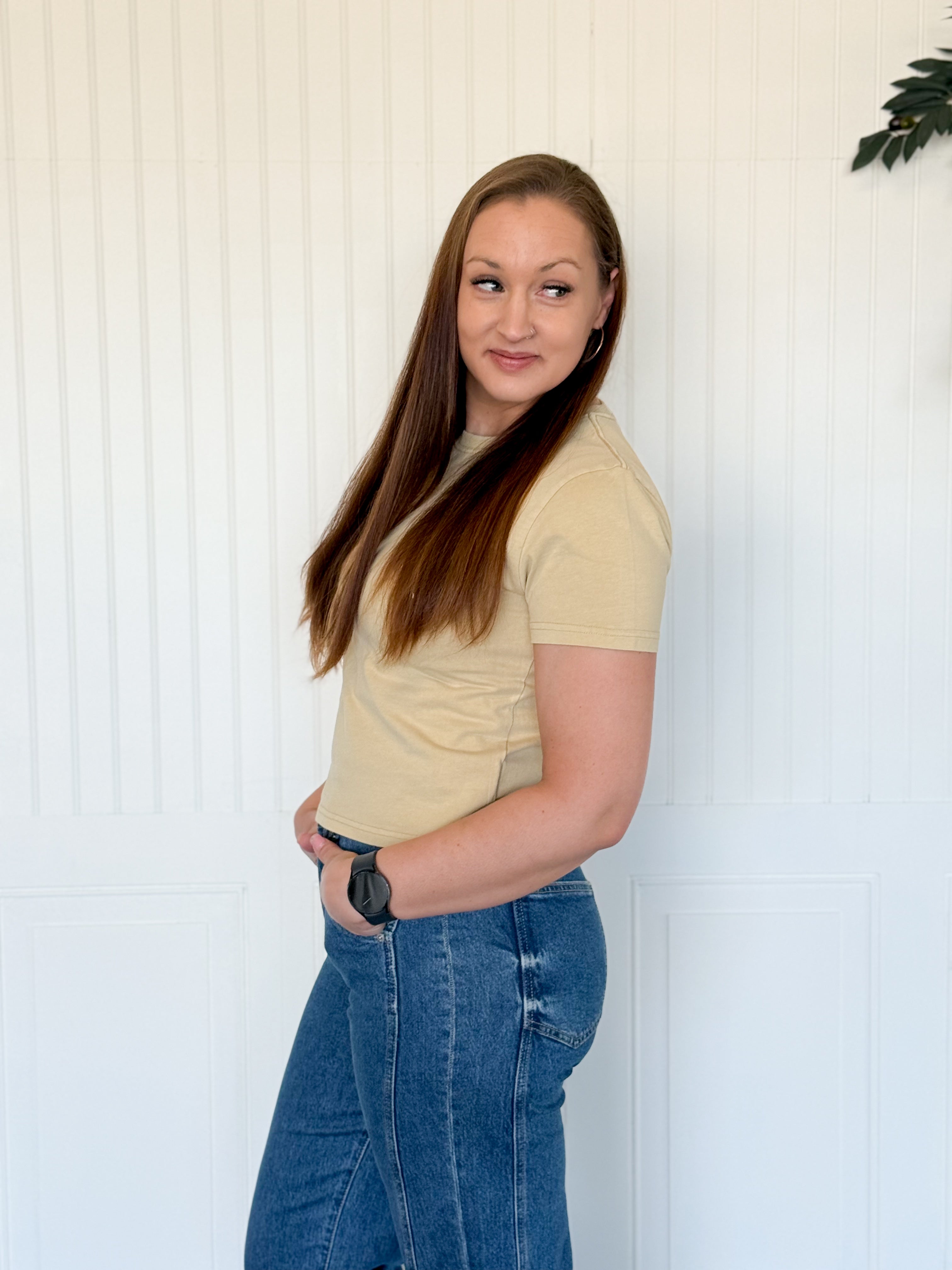 This is that “grab it and go” tee you’ll keep reaching for because it just fits right. It’s our best-selling standard tee, cropped right at the waistline for an effortless, flattering look—no fussing, no extra bunching. The mineral wash gives it that perfectly lived-in vibe, and it’s truly an everyday essential you can wear year-round.