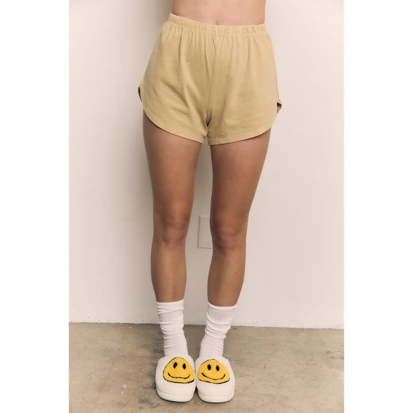 Mineral Wash High-Waist Jersey Shorts, Classic Beige