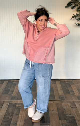 Vintage Vibe Mineral Wash Pullover – Relaxed Exposed Seam Cotton Sweatshirt, Cacao