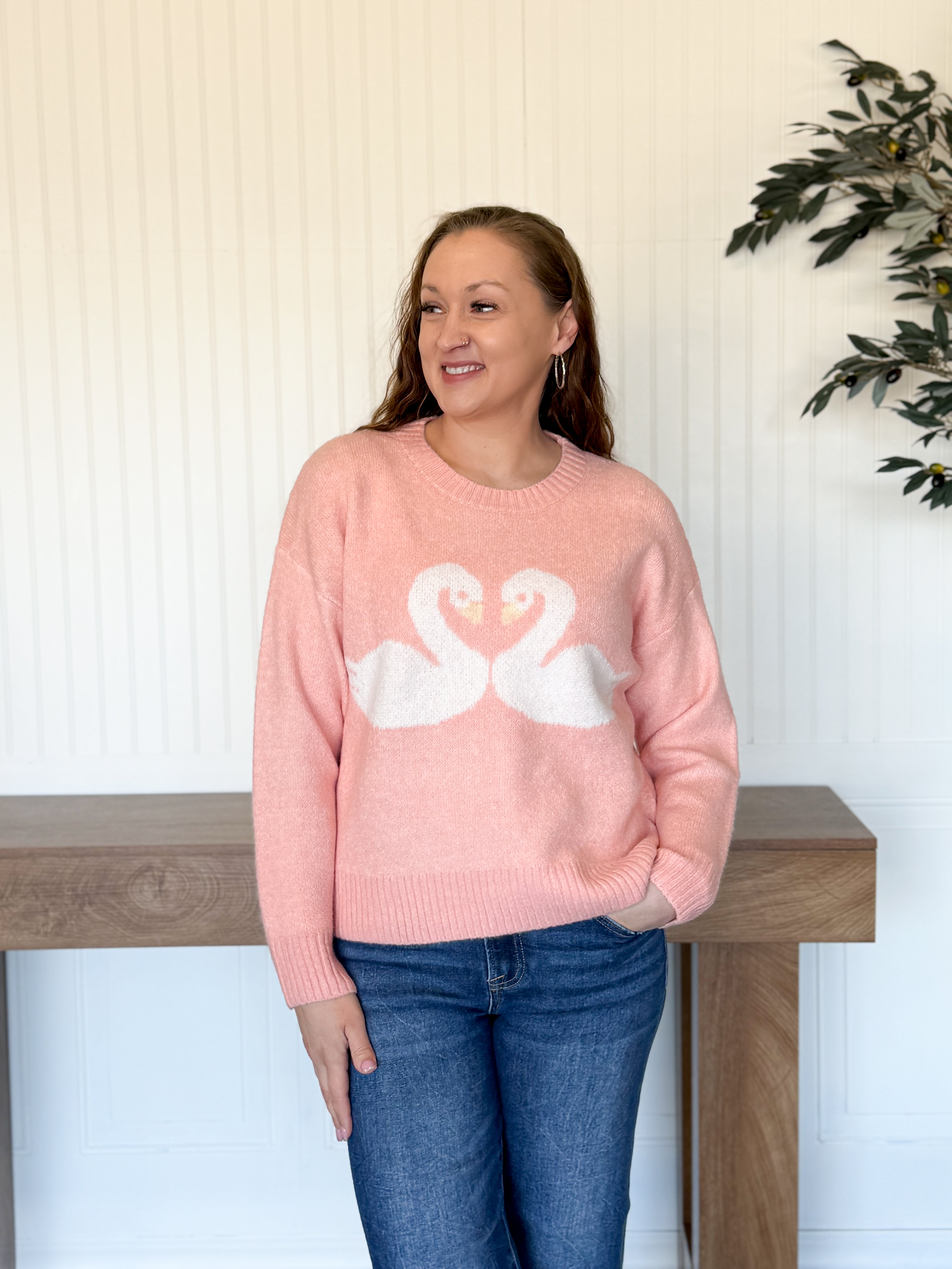 • Soft knit sweater with swan heart design