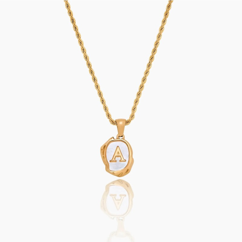 Mother of Pearl 18K Gold Plated Initial Necklace