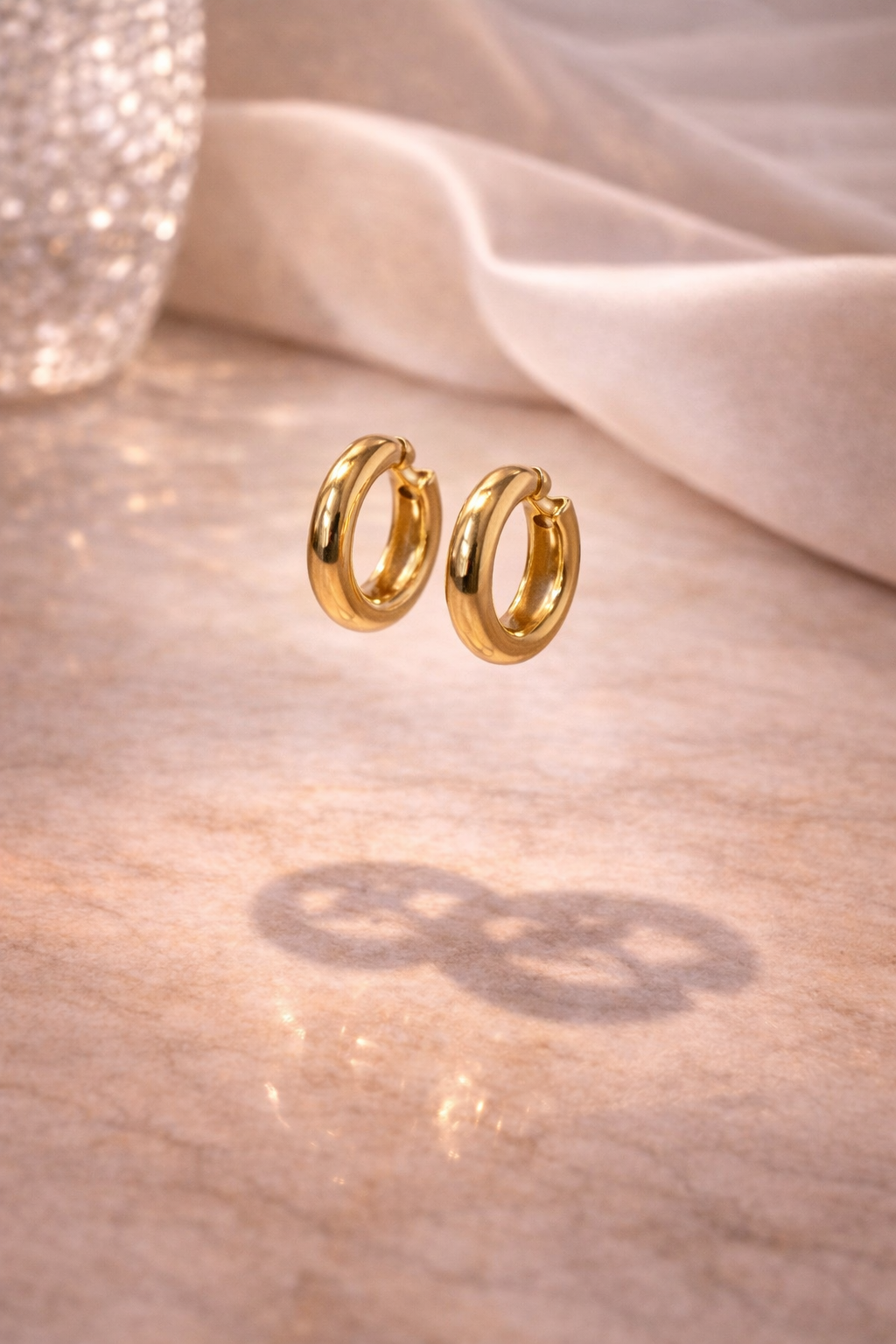 Though they have a slightly thicker appearance, they’re lightweight enough for all-day wear. Made from PVD Gold Plated Stainless Steel, they’re part of our Waterproof Collection — designed for durability, shine, and everyday confidence.