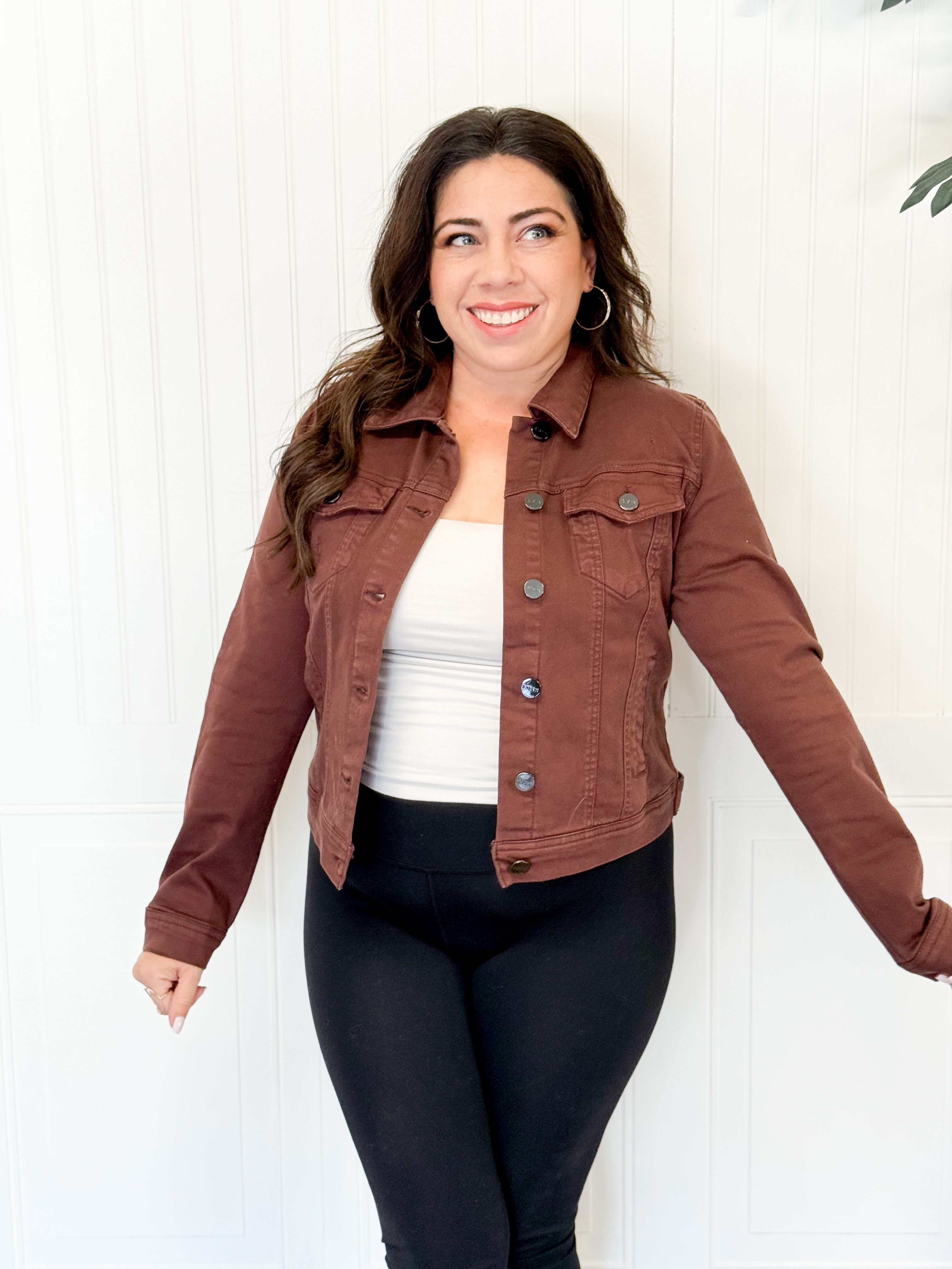Classic with a lived-in feel, the Camden Vintage Wash Jacket is that effortlessly cool layer you’ll wear on repeat. Crafted from a soft, stretchy cotton blend, it moves with you while keeping its structured shape. The vintage wash gives it a perfectly worn look — timeless, versatile, and made to pair with everything from flowy dresses to your favorite denim.