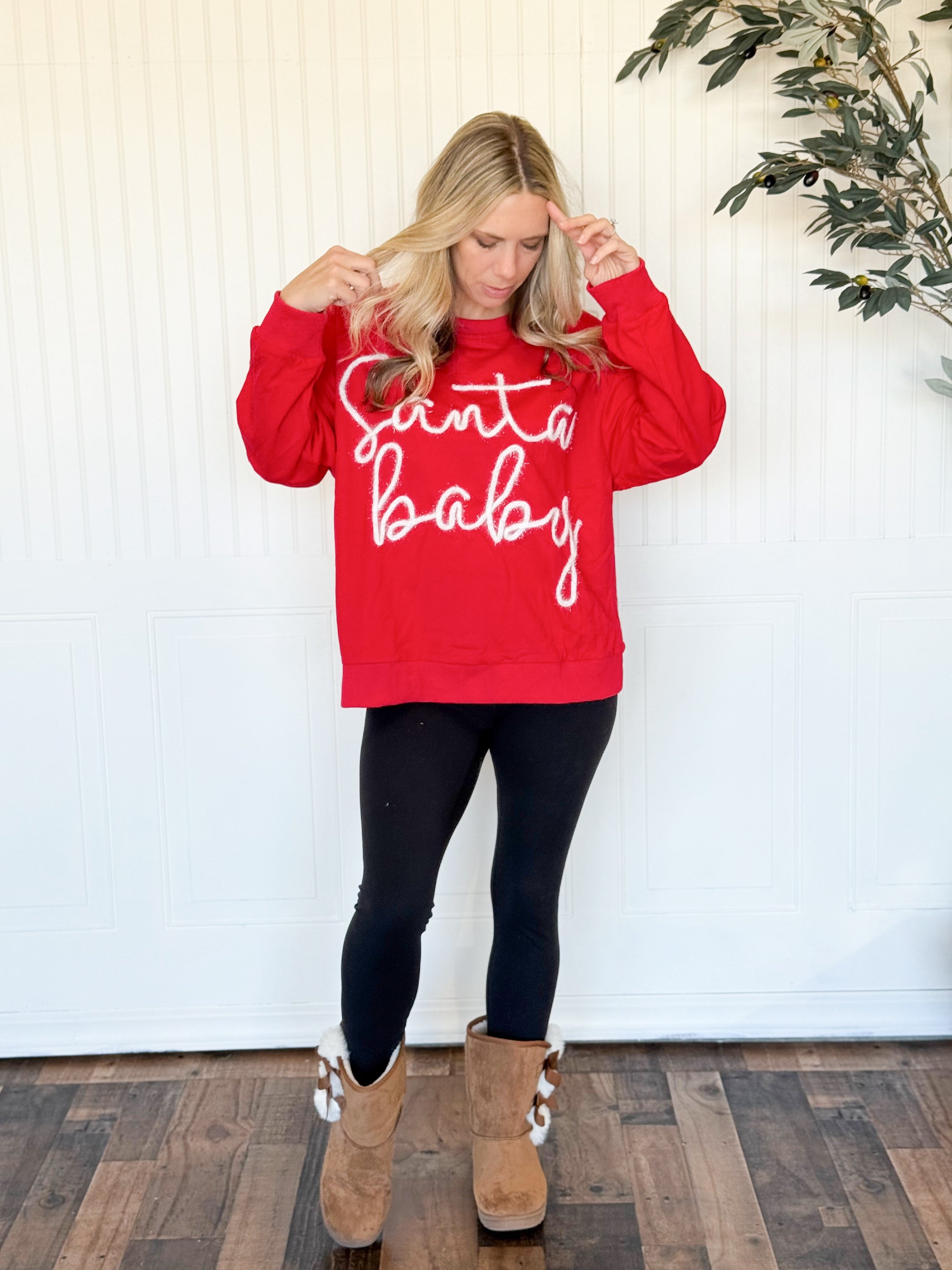The Santa Baby Tinsel Long Sleeve is a festive must-have that brings sparkle and fun to your holiday wardrobe. With bold “Santa Baby” lettering trimmed in tinsel, this cozy sweatshirt is as playful as it is comfortable. Perfect for Christmas gatherings, cookie baking, or lounging by the fire, it’s an instant way to add cheer to your look.