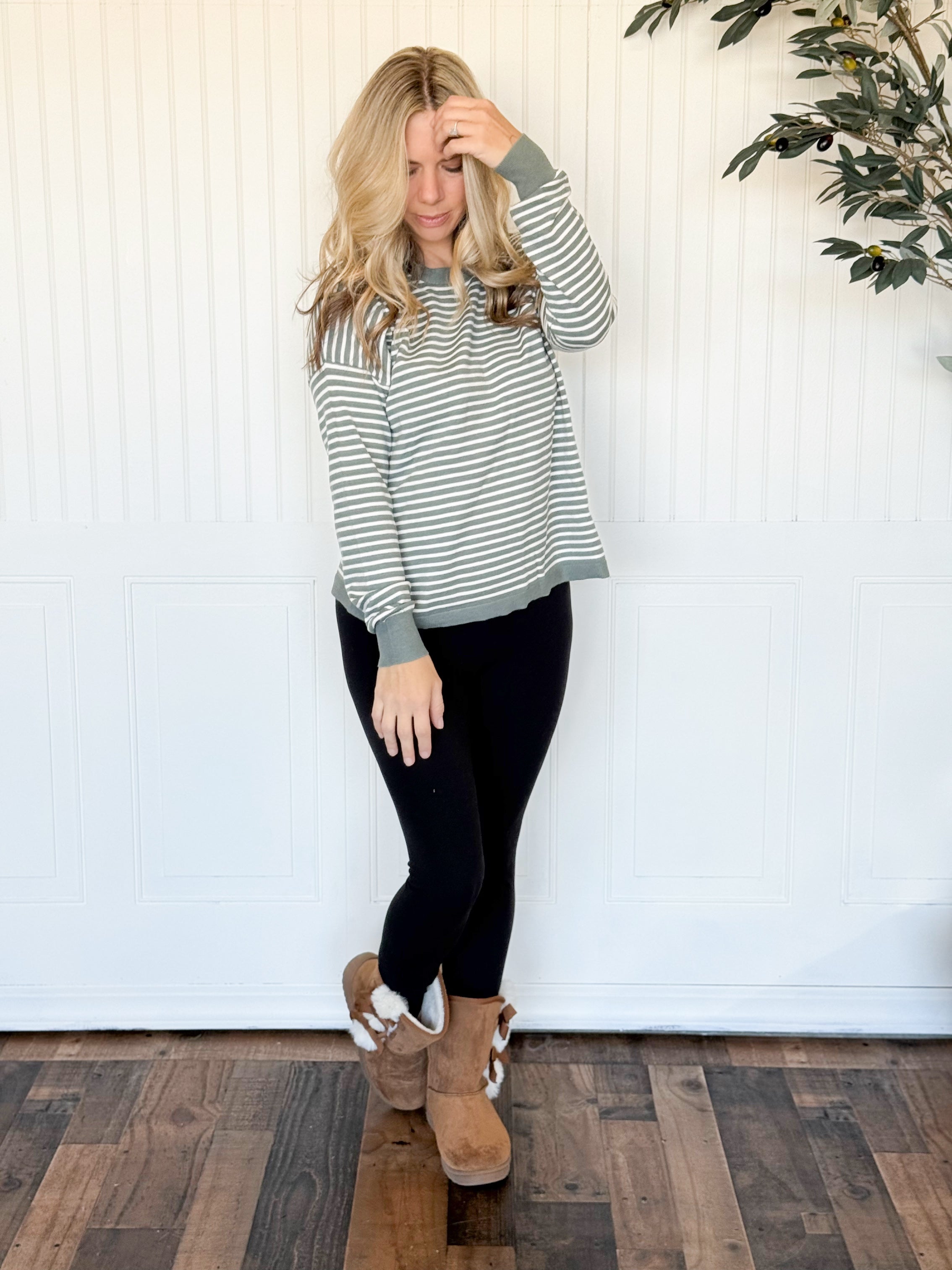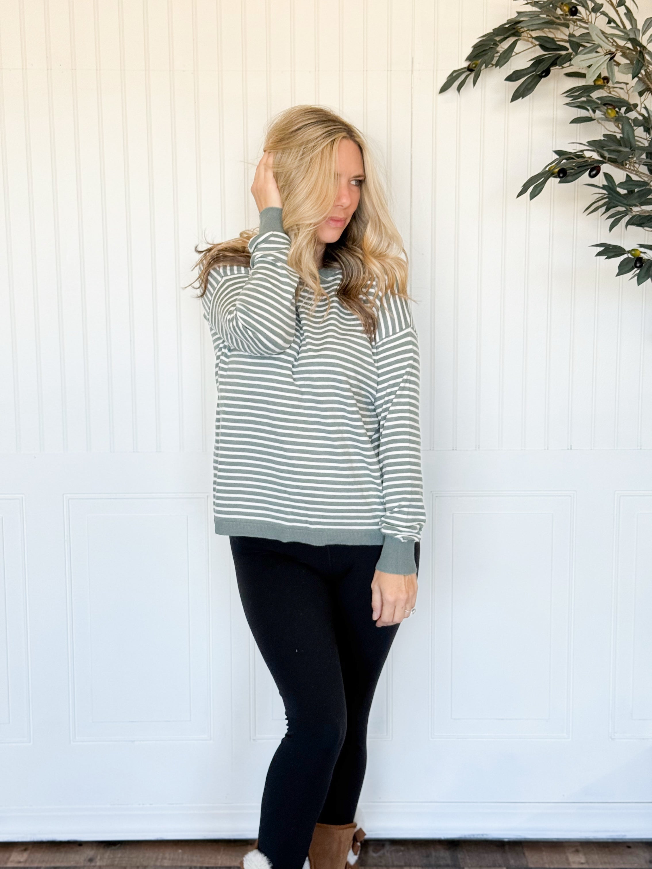 Timeless and effortlessly refined, the Rowan Striped Pullover brings classic style to cool-weather dressing. With its relaxed fit and softly draping knit, it offers that perfect blend of comfort and polish. The clean crew neckline and subtle striping make it easy to style — whether paired with your favorite denim for casual weekends or layered with trousers for a more elevated look.