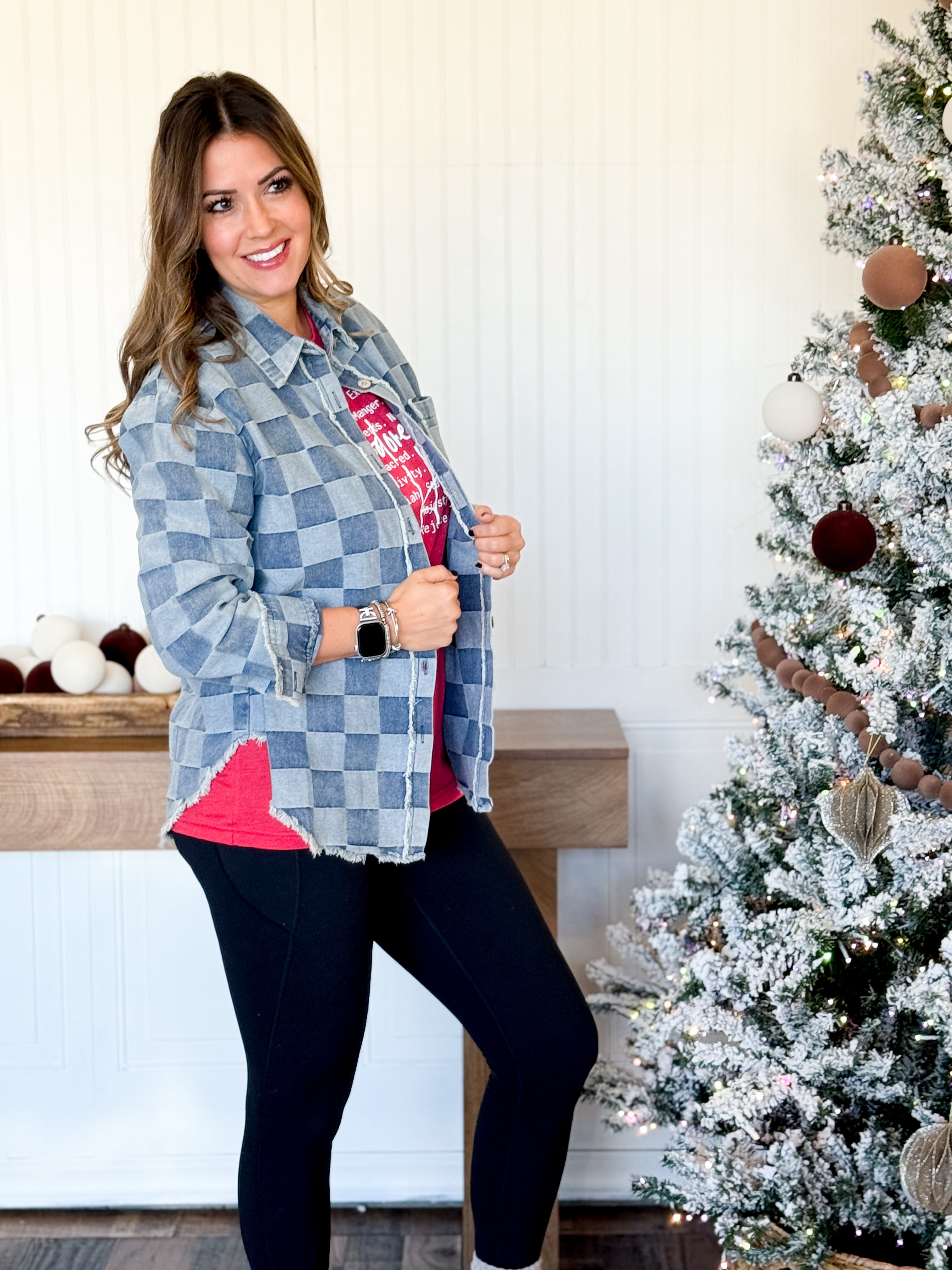 A laid-back classic with a little edge — this Washed Checkered Denim Shirt brings that perfectly lived-in look you’ll love. Designed with subtle frayed edges and a soft washed finish, it’s equal parts casual and cool. Layer it over a tee, wear it buttoned up, or tie it around your waist for that effortlessly relaxed vibe that works year-round.