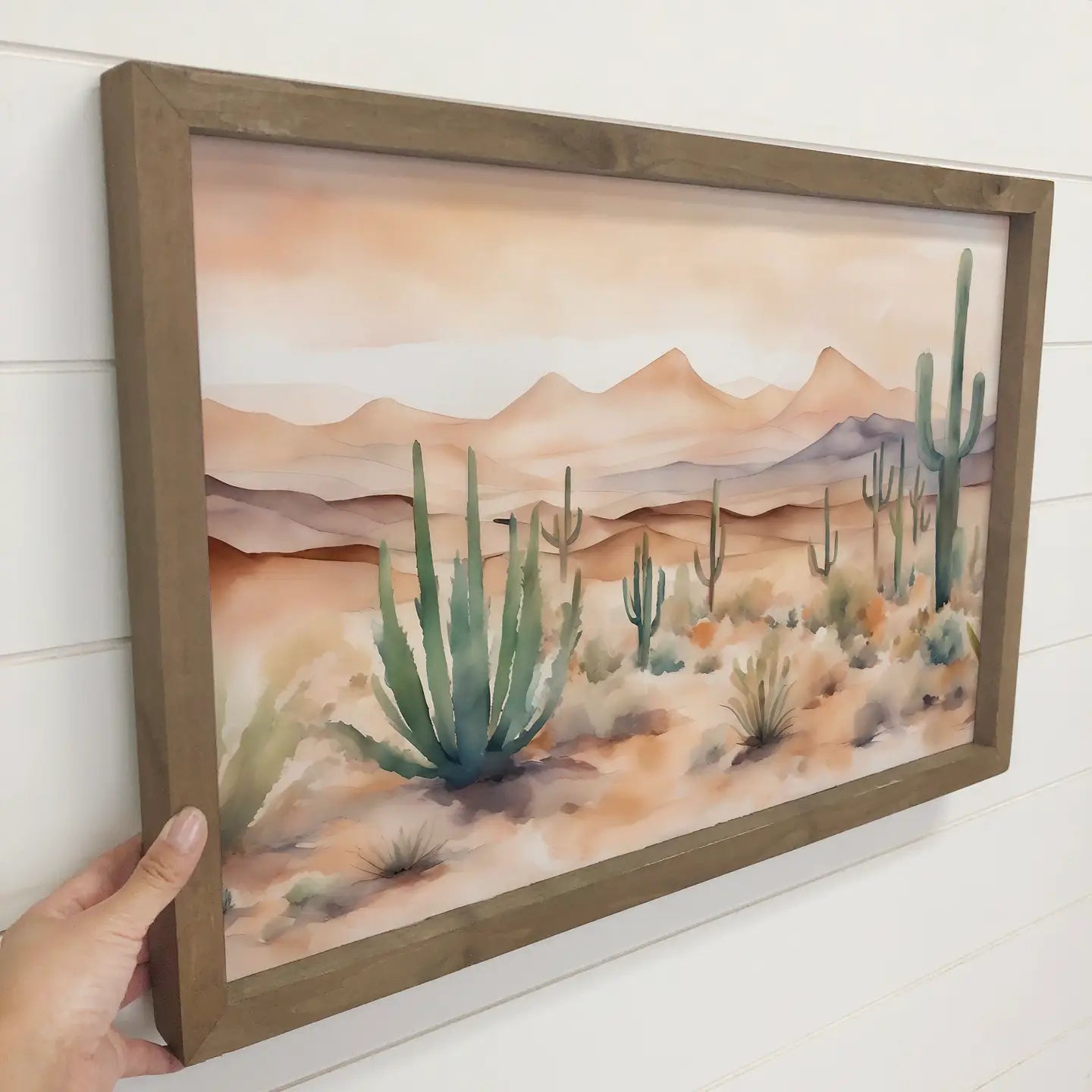 Watercolor Cactus Desert - Nature Canvas Art - Framed Desert 12x18" – The Farmhouse