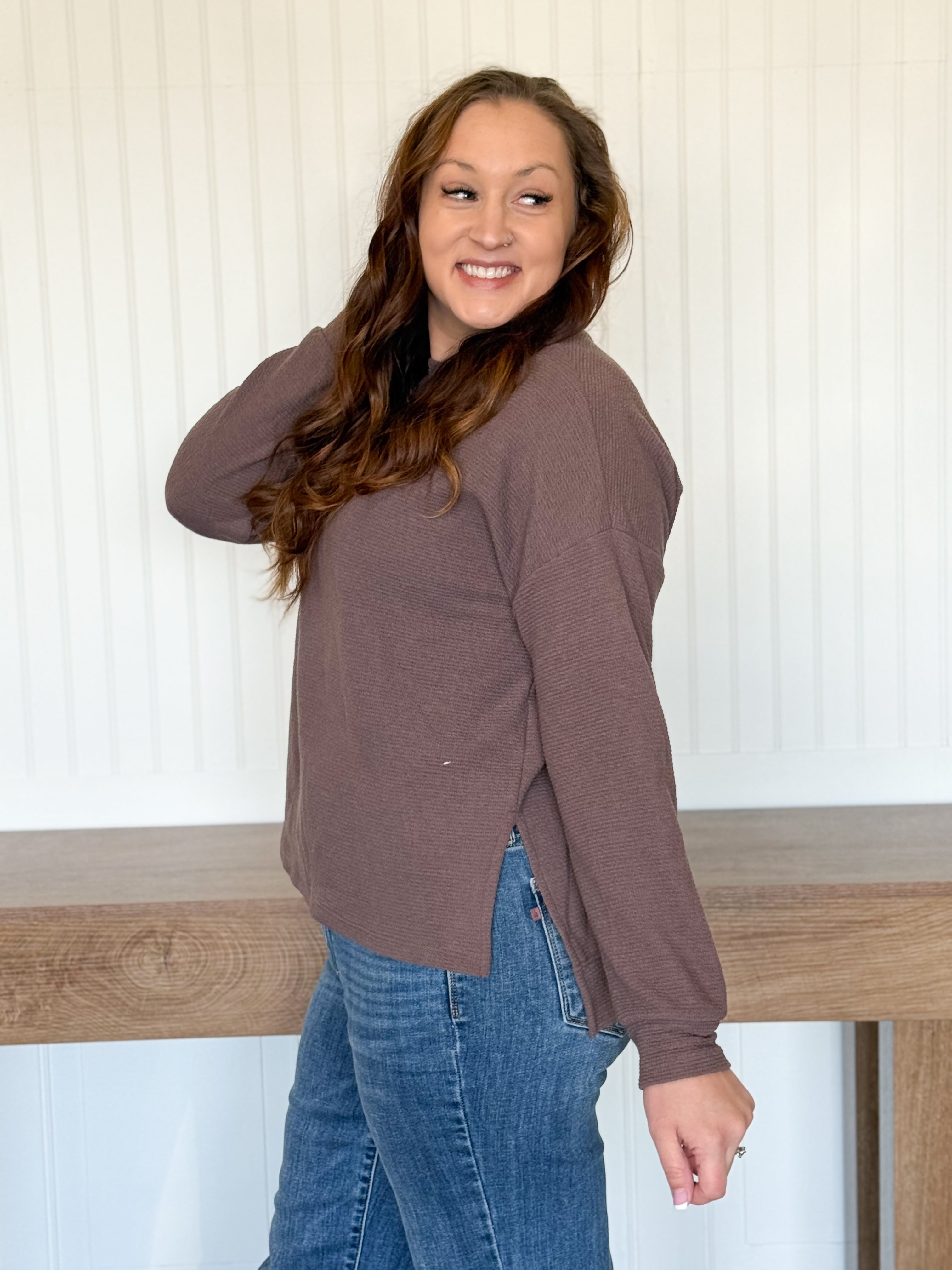 This is one of those pieces that just fits into everyday life so easily. The Warm Drift Cloudy Knit Top has that soft, cozy feel you want to live in, but still looks polished enough to head out the door feeling put together. It’s relaxed without being oversized, comfy without looking like loungewear — truly a grab-and-go favorite.