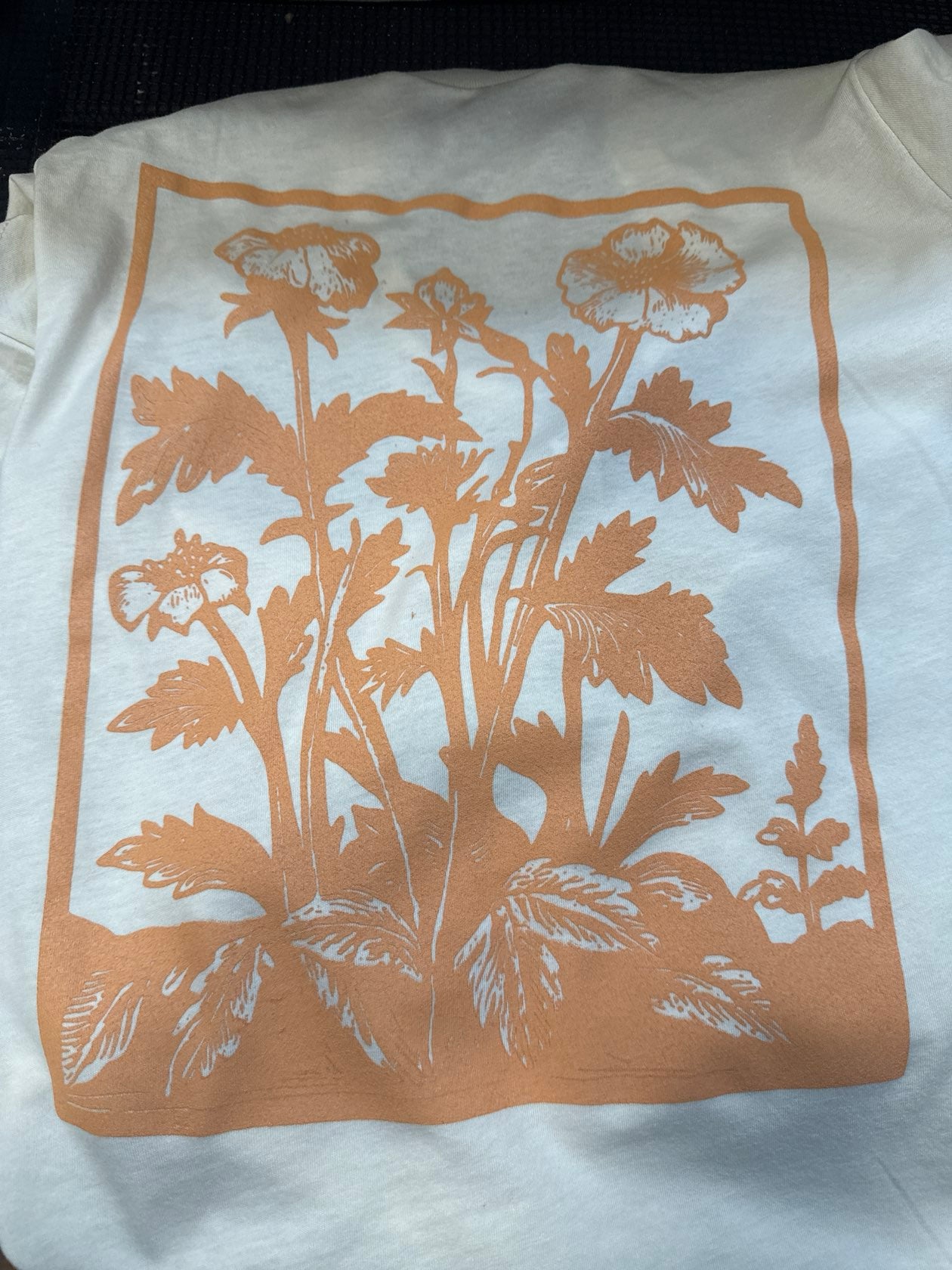 You know those quiet little moments — coffee on the porch, sun just barely peeking over the canyon hills? That’s exactly the energy this tee brings. We screen printed this floral block design in-house, using a soft peach ink that feels feminine without trying too hard. The Bella Canvas tee gives you that broken-in, lived-in softness right from the start — like your favorite tee you “accidentally” wear three days in a row.