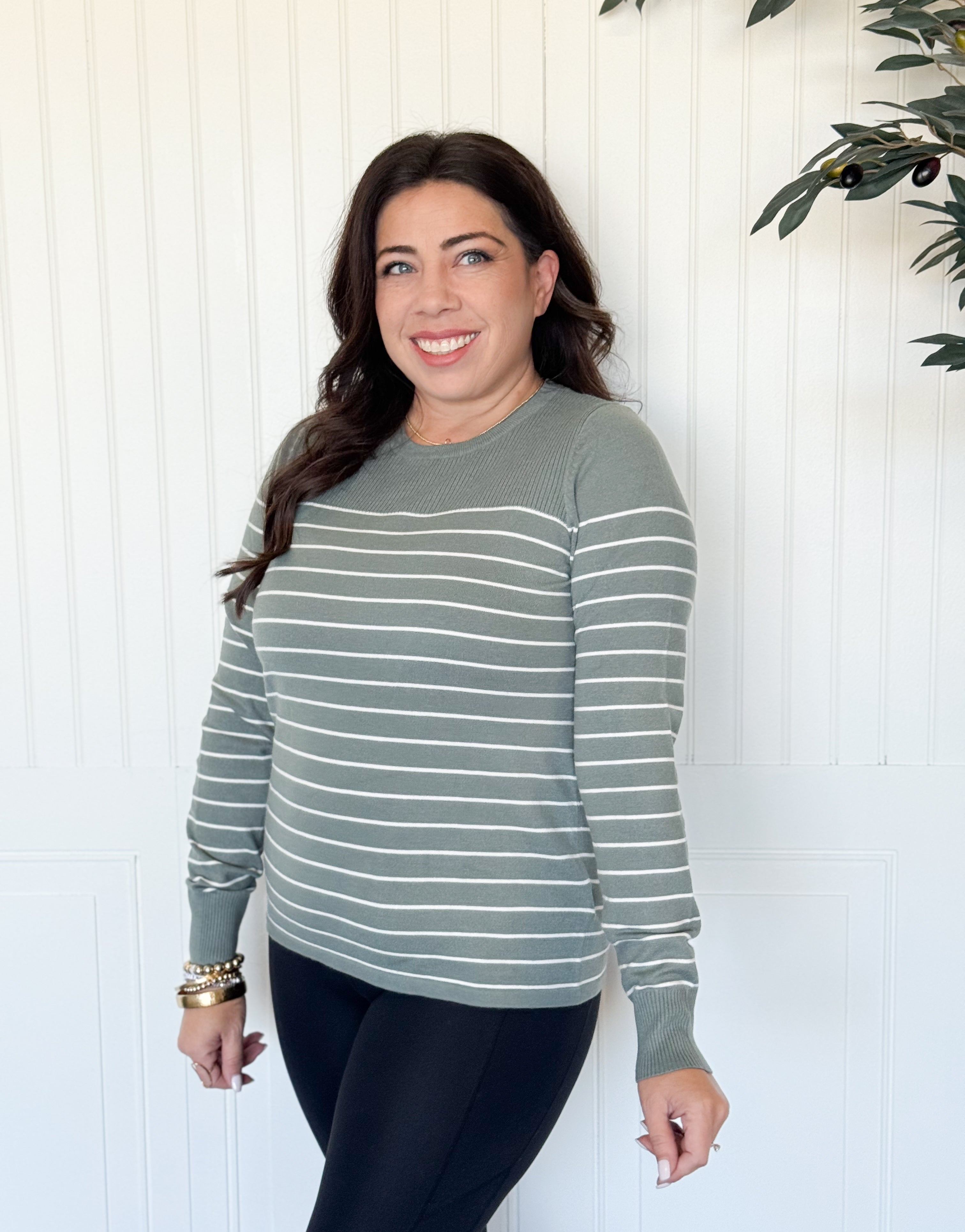 Luxuriously soft and effortlessly classic, the Sutton Stripe Sweater is that polished everyday essential your wardrobe’s been waiting for. With a smooth, silky knit and timeless stripe pattern, it drapes beautifully for a flattering, relaxed fit. Perfect for layering or wearing on its own, it’s an easy way to look refined while feeling completely at ease.