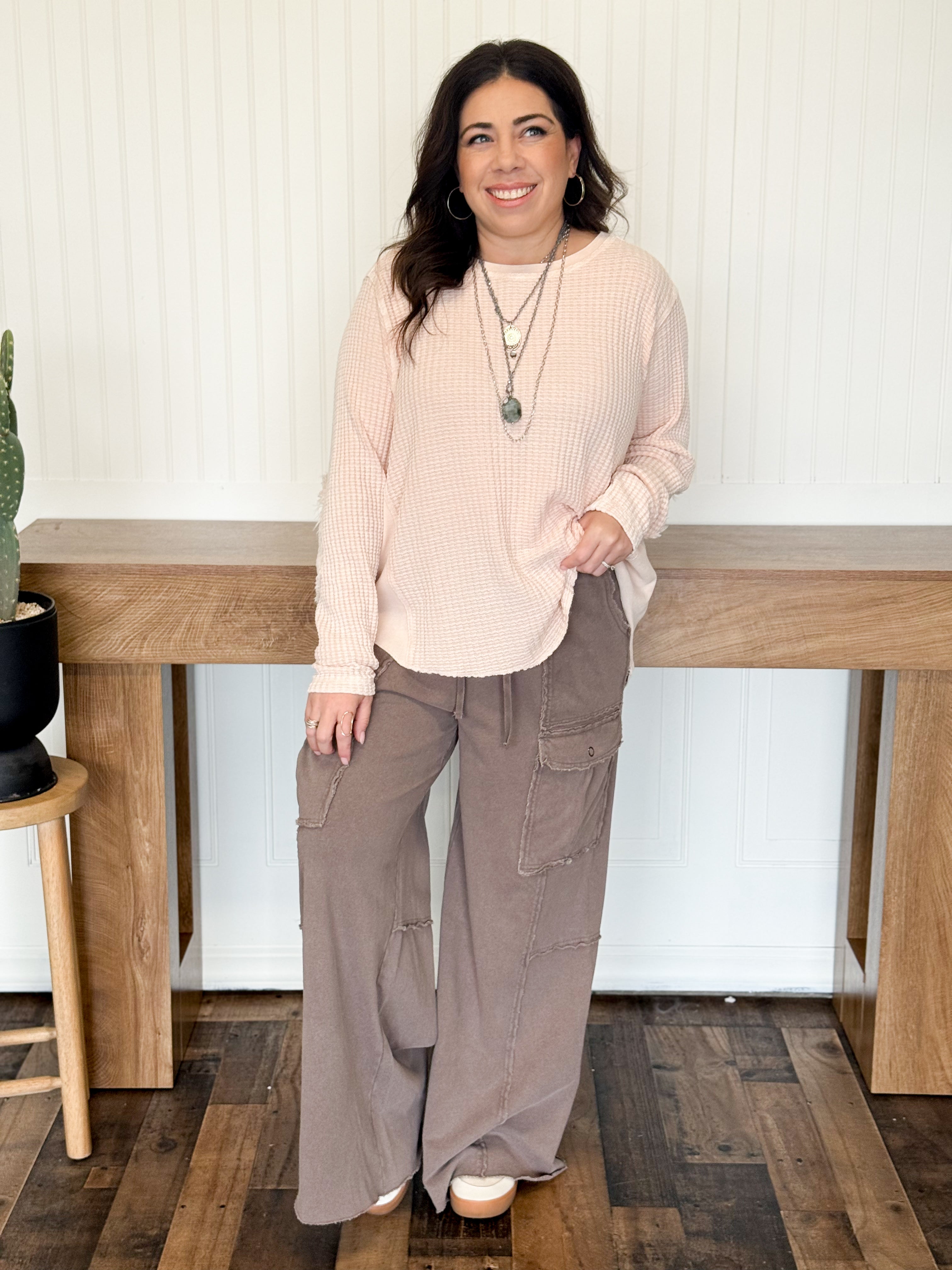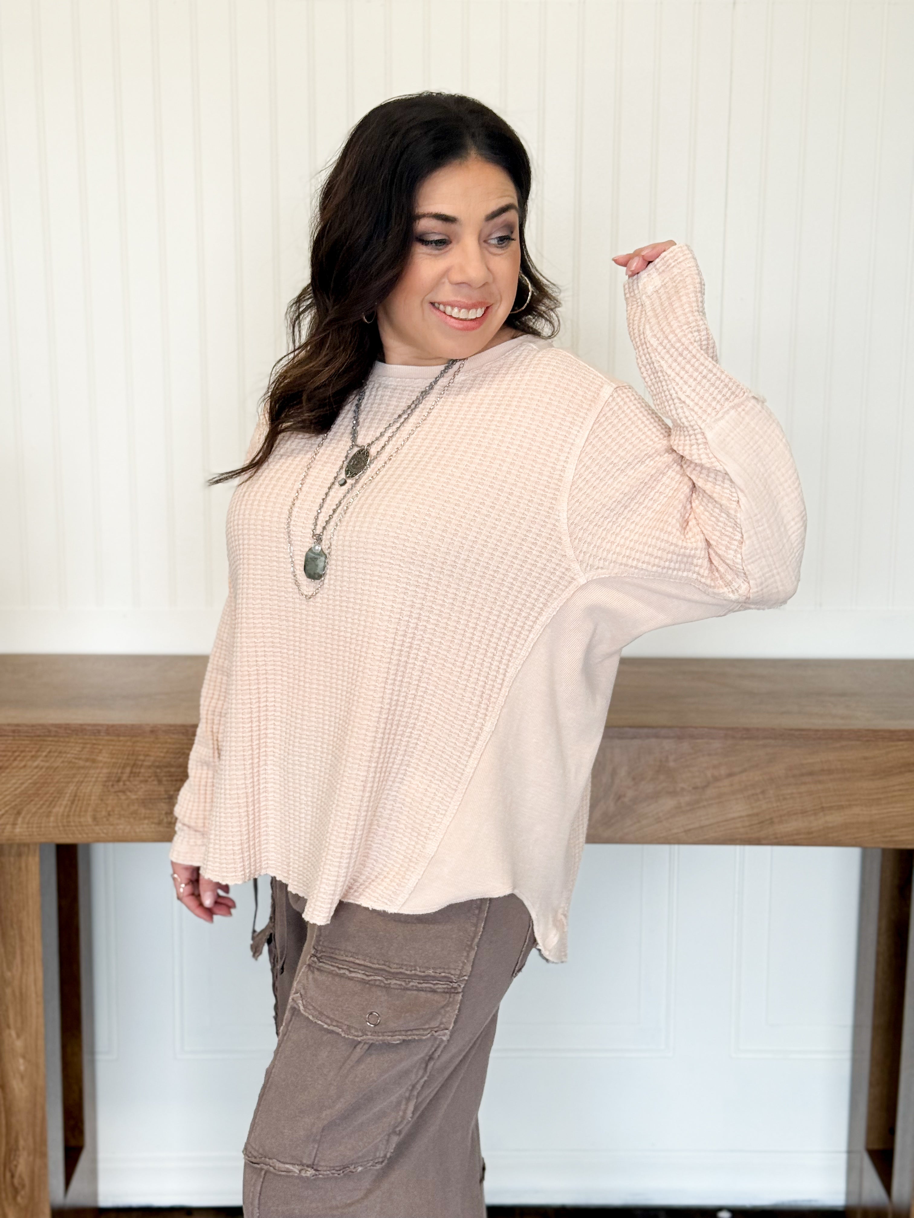 This is that throw-on top that makes you feel instantly cozy and casually cute — like you actually planned your outfit, even if you grabbed it while running out the door. The mineral wash gives it that perfectly lived-in look, and the wide boat neckline + drop shoulders make it drape in the most relaxed, flattering way.