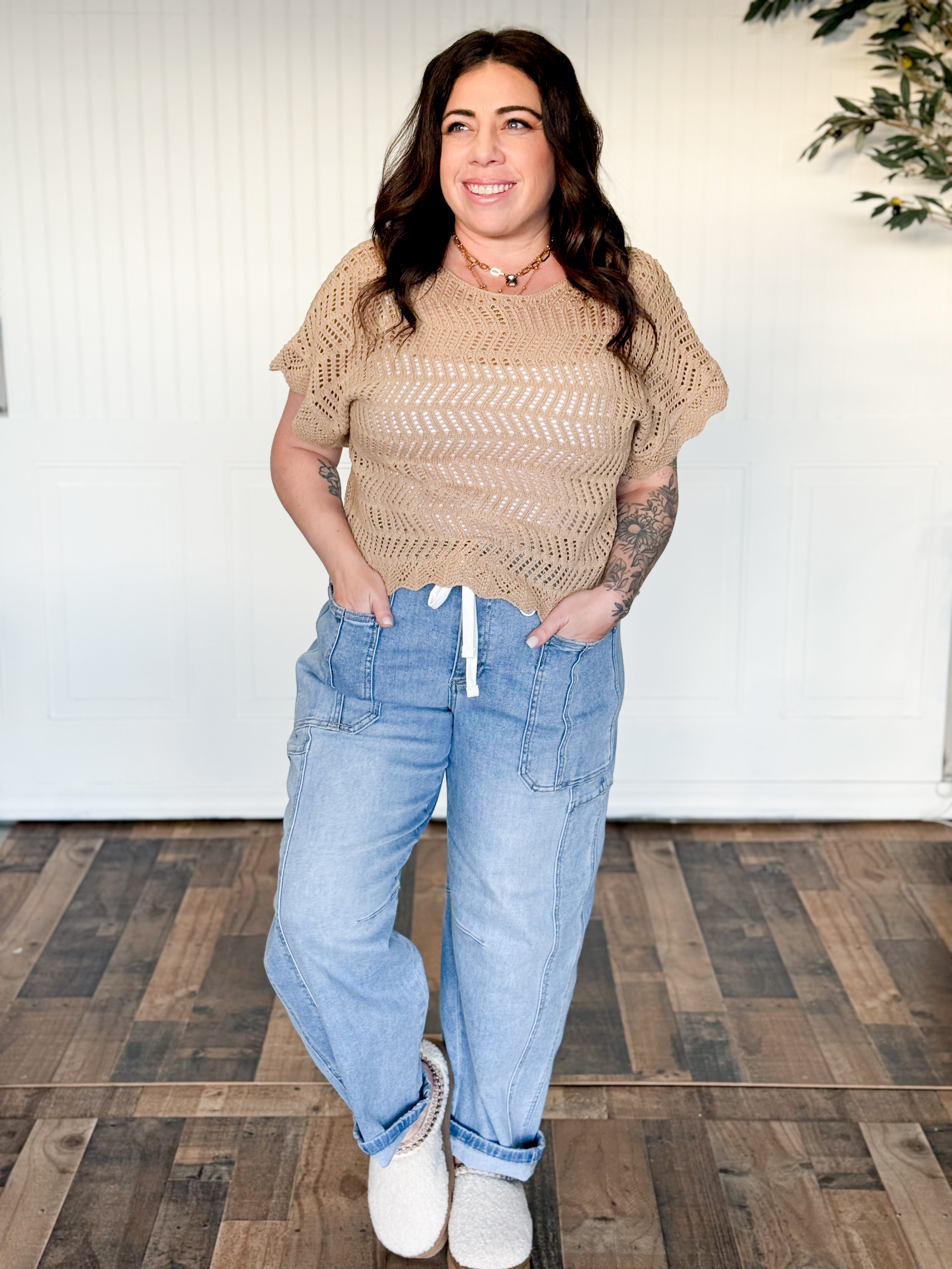 This is that magic “throw-on” layer that makes an outfit feel instantly styled—without feeling heavy or fussy. The open-weave crochet keeps it airy and breathable, the oversized drape gives you that effortless, relaxed look, and the scallop edges add the prettiest little feminine touch. It’s one of those pieces that can swing boho, casual, resort, or even work-friendly depending on what you pair it with—so yes, it earns its closet space.