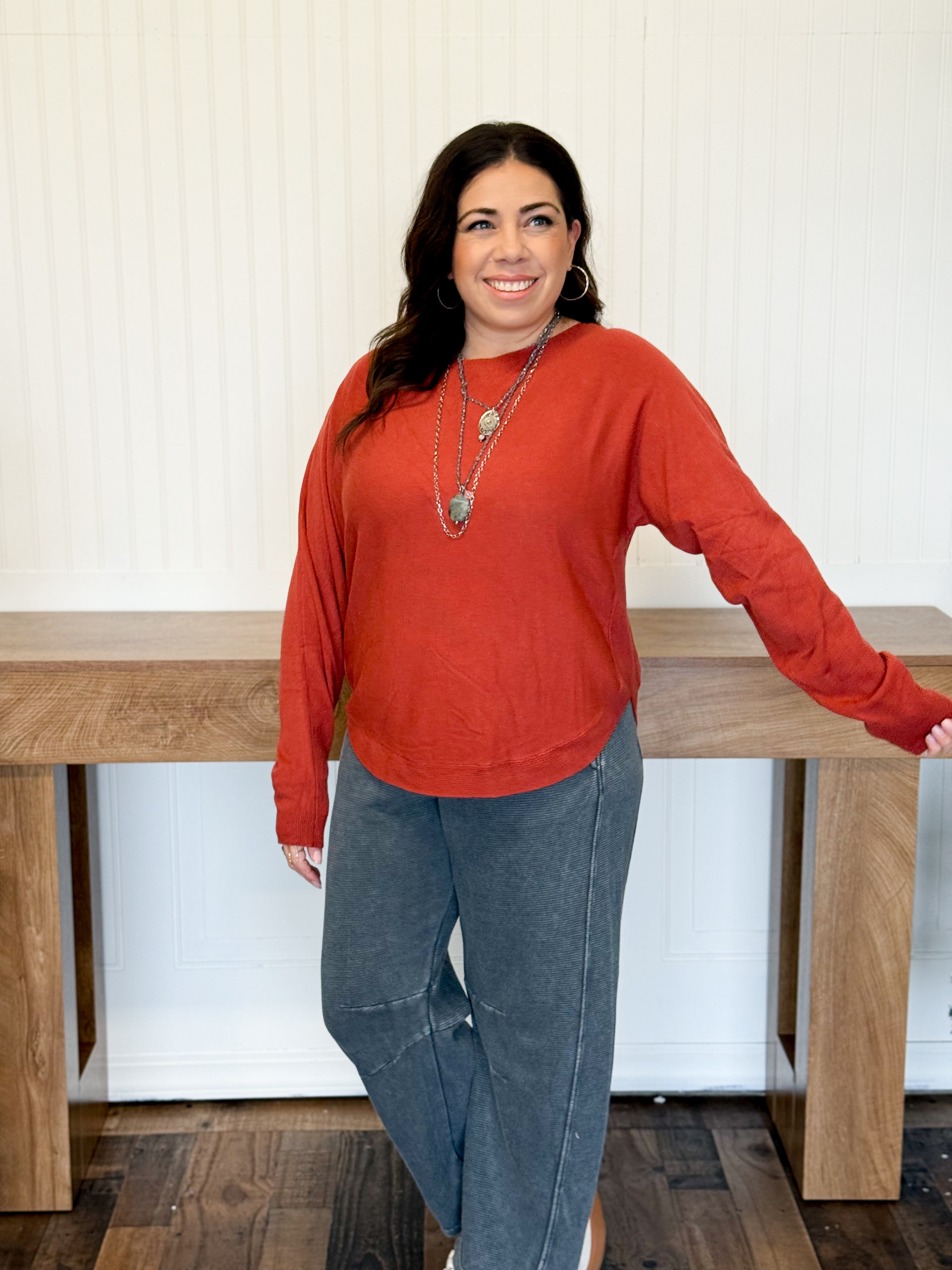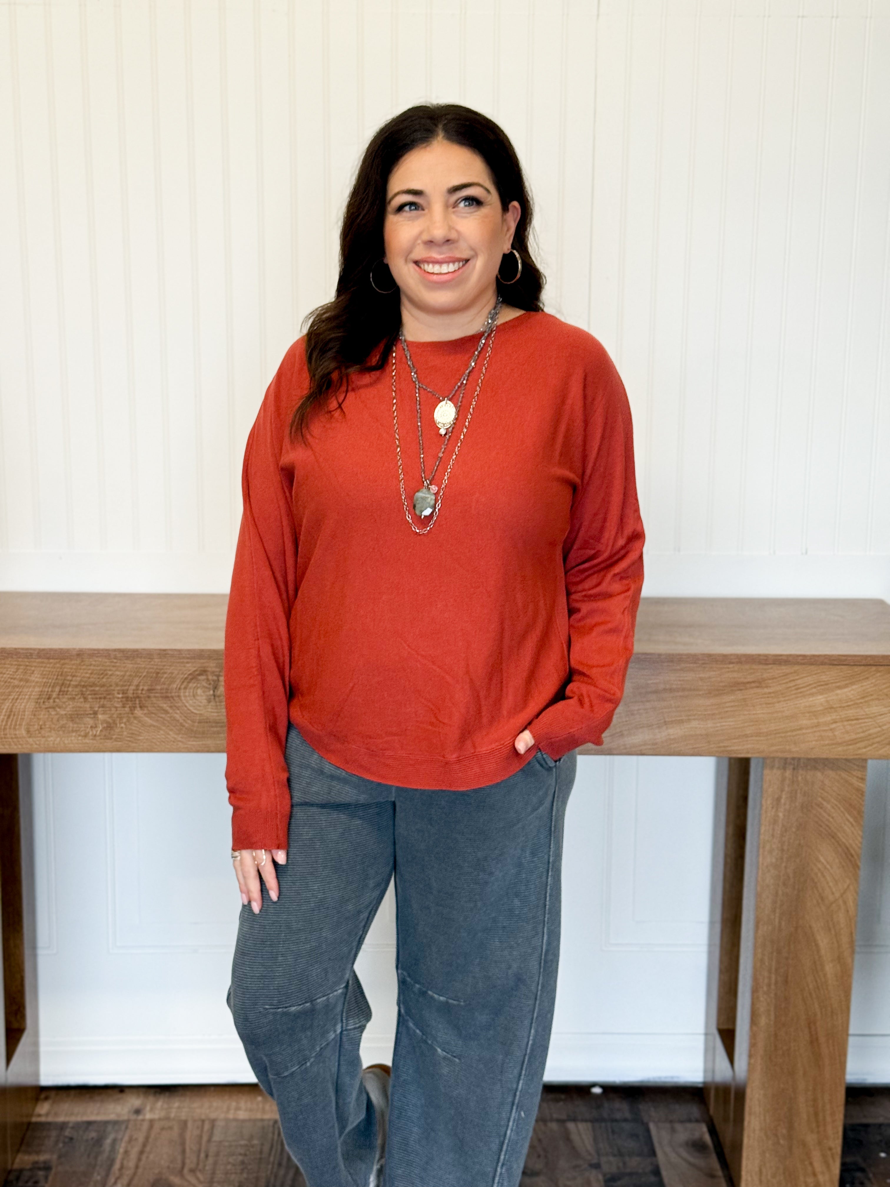 Soft Current Boatneck Pullover, Red Rust
