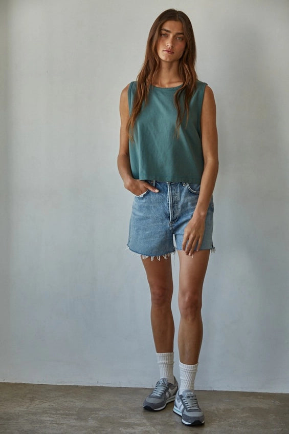This cotton sleeveless crop top is the perfect mix of simplicity and modern style. Designed with a classic crew neckline and clean sleeveless silhouette, it offers a sleek, minimalist look that pairs effortlessly with just about anything in your wardrobe. The cropped length gives it a trendy edge while still remaining versatile enough for everyday wear. Whether styled casually or layered, this top is a timeless staple you’ll keep reaching for season after season.