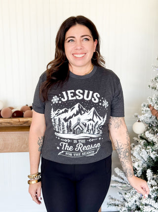 Jesus is the Reason for the Season Christmas Unisex Graphic Tee, Charcoal