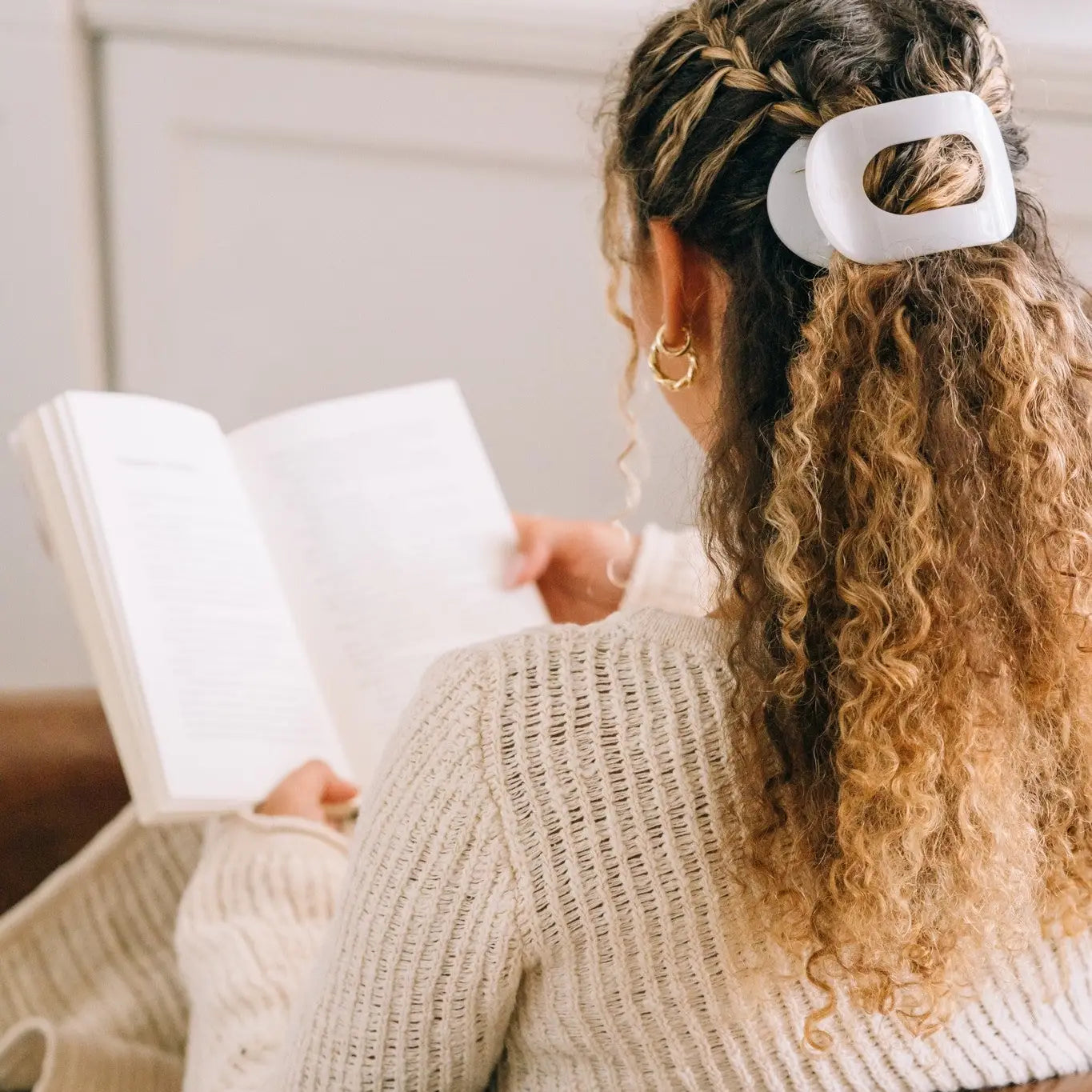 This one gives that clean, fresh, “pull it together in 2 seconds” vibe. Coconut white looks so pretty with denim, neutrals, and all your cozy fits—and the flat-back design means you can actually lean back in the car or on the couch without the clip digging in.