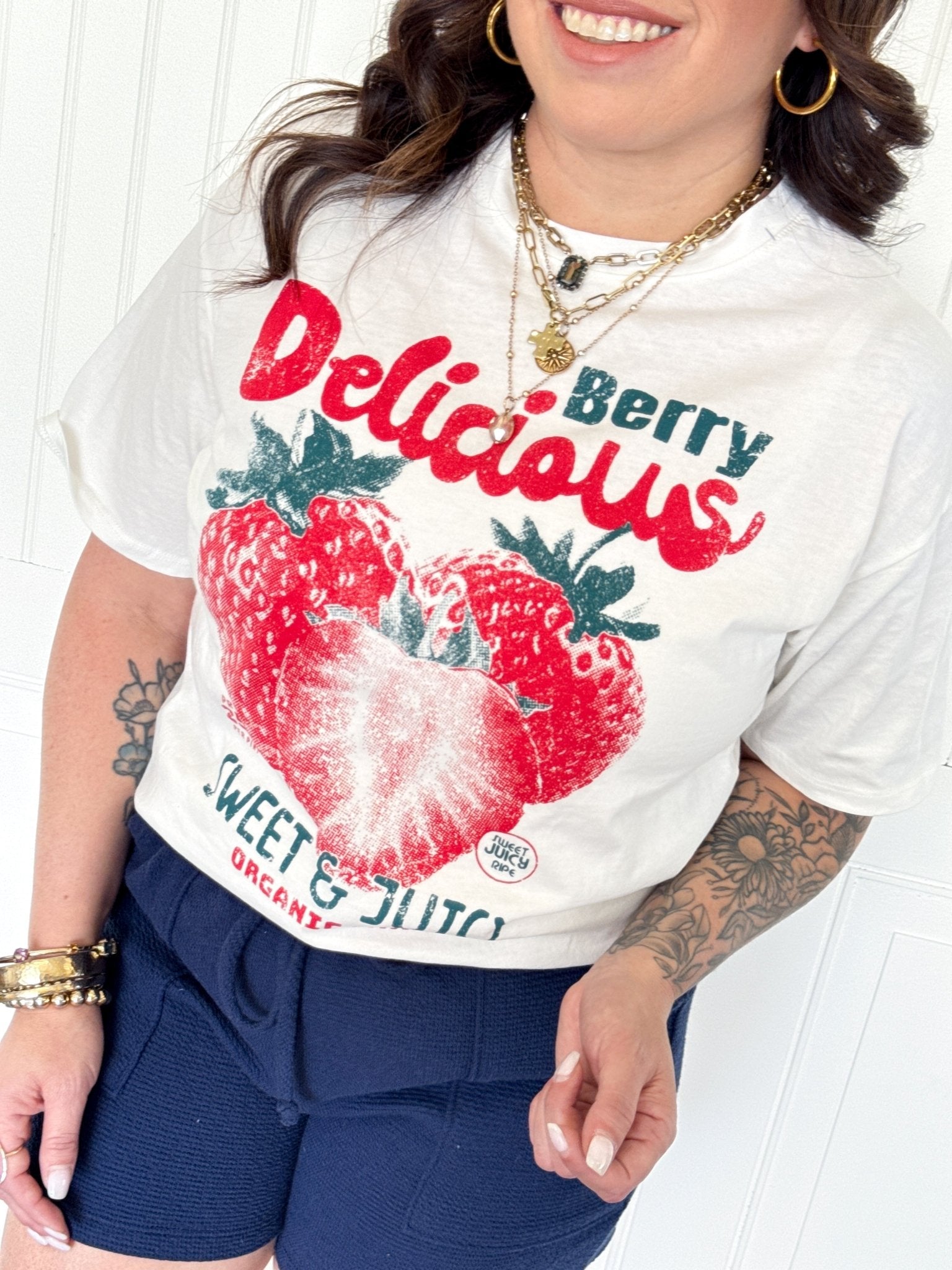 A fun, feel-good tee you'll want to wear on repeat. The Berry Delicious Graphic Tee brings a playful, boho-inspired print to your everyday wardrobe in a relaxed, easy-wearing silhouette that pairs with everything in your closet.