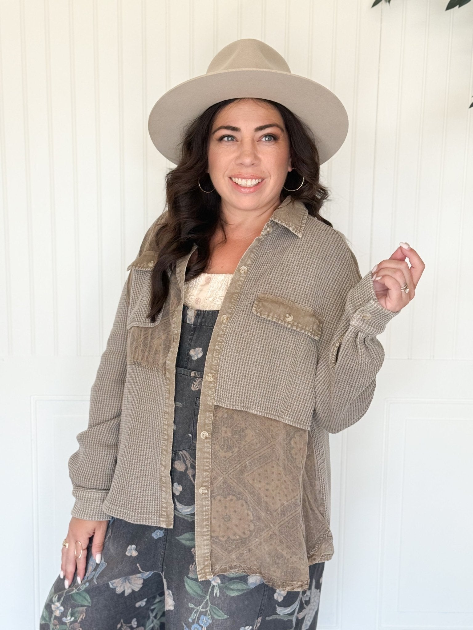 The Bandana Wash Thermal Shirt brings together cozy texture and a bold, lived-in look. Designed in a soft waffle knit with a mineral wash finish, it has that perfectly broken-in feel you’ll love to throw on. The relaxed, boxy fit keeps it casual, while the bandana-style print adds a fun, western-boho edge. Finished with chest flap pockets, it’s as practical as it is stylish.