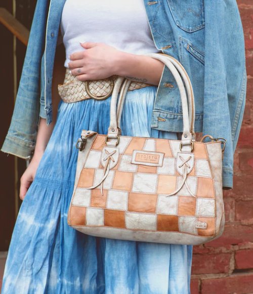 - Shoulder bag with padded straps or wear as a crossbody, unique no-waste patchwork front panel made from scrap leather
