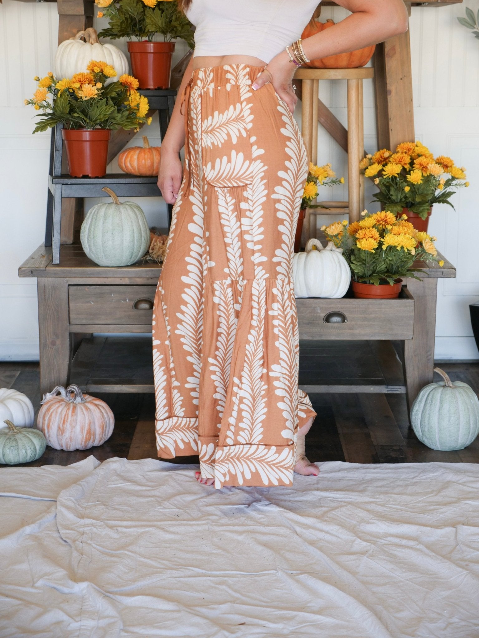 The Sundown Palms Wide Leg Pants are here to bring all the breezy, boho vibes. With their bold, nature-inspired print and ultra-voluminous silhouette, these pants are made for days when you want comfort without sacrificing style. Pair them with a fitted tank or a breezy blouse, and you’ve got that effortless “vacation-ready” look—even if you’re just running errands.