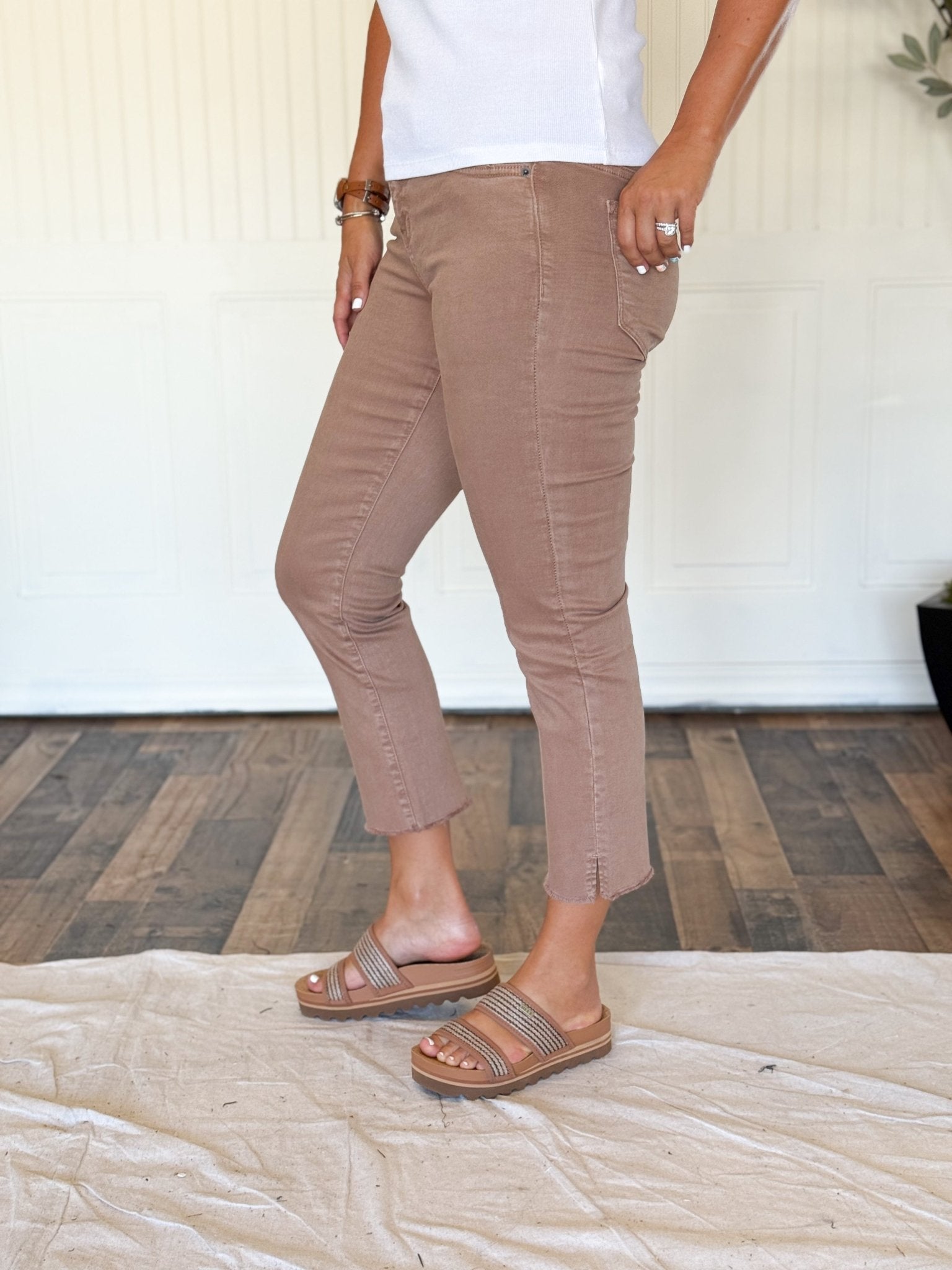 These Straight Leg Slit Jeans are the perfect blend of classic denim with a modern twist. With a clean straight leg fit and subtle slit at the hem, they add just the right amount of edge to your everyday look. The slight stretch keeps them comfortable while holding their shape, making them an easy go-to for both casual and dressed-up days.