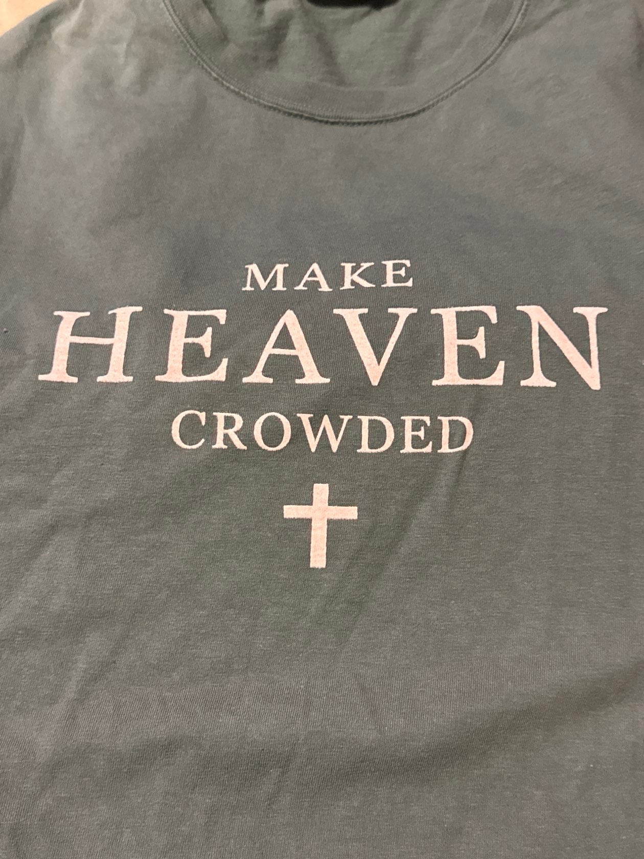 This tee carries a message that matters — simple, bold, and rooted in purpose. “Make Heaven Crowded” is a reminder to live with intention and love loudly, all wrapped up in a piece you’ll actually want to wear. Screen printed by us with a soft, vintage-inspired feel, it’s designed to be meaningful without feeling heavy.