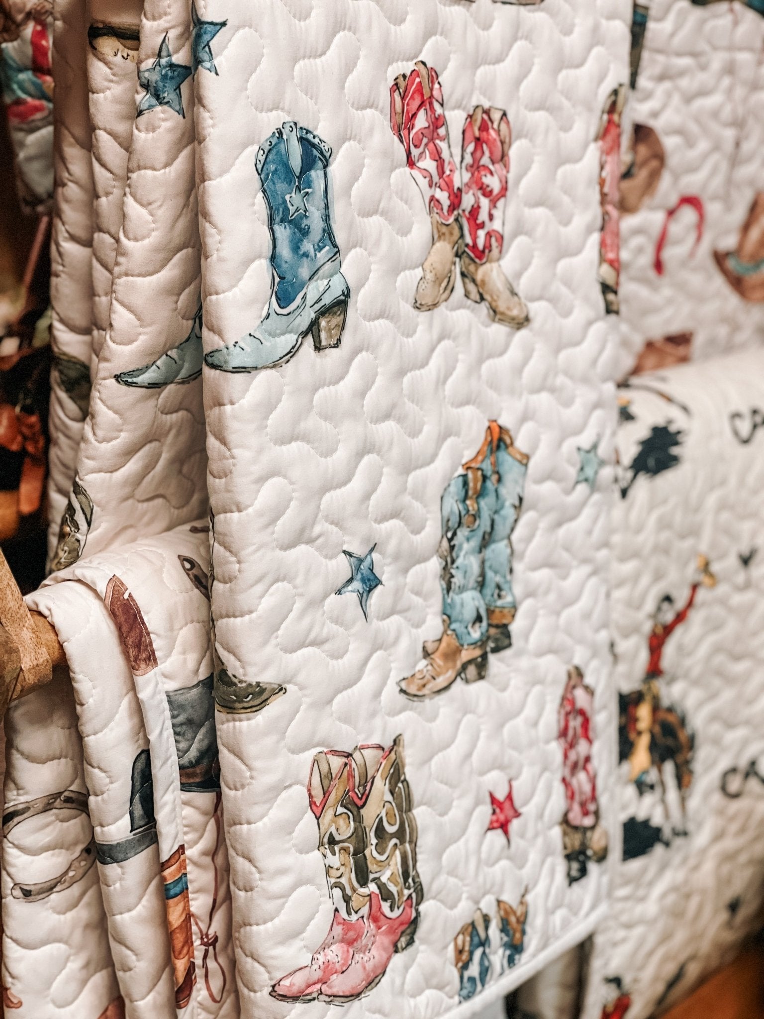 Thunderbird Boots Baby Blanket Quilt - Blue and Pink Boots - 300 Footwear - The Farmhouse