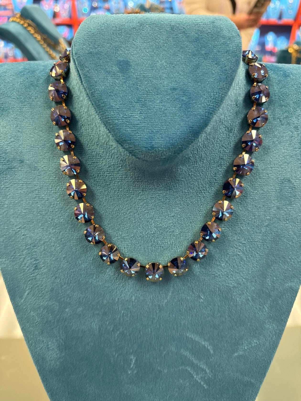 Rich, warm, and undeniably polished — The Sofia Necklace in Azuro is the kind of piece you reach for again and again. A Rivoli-style design with blue crystals and 24K antique gold plating, it works beautifully worn alone or layered for a more curated look.